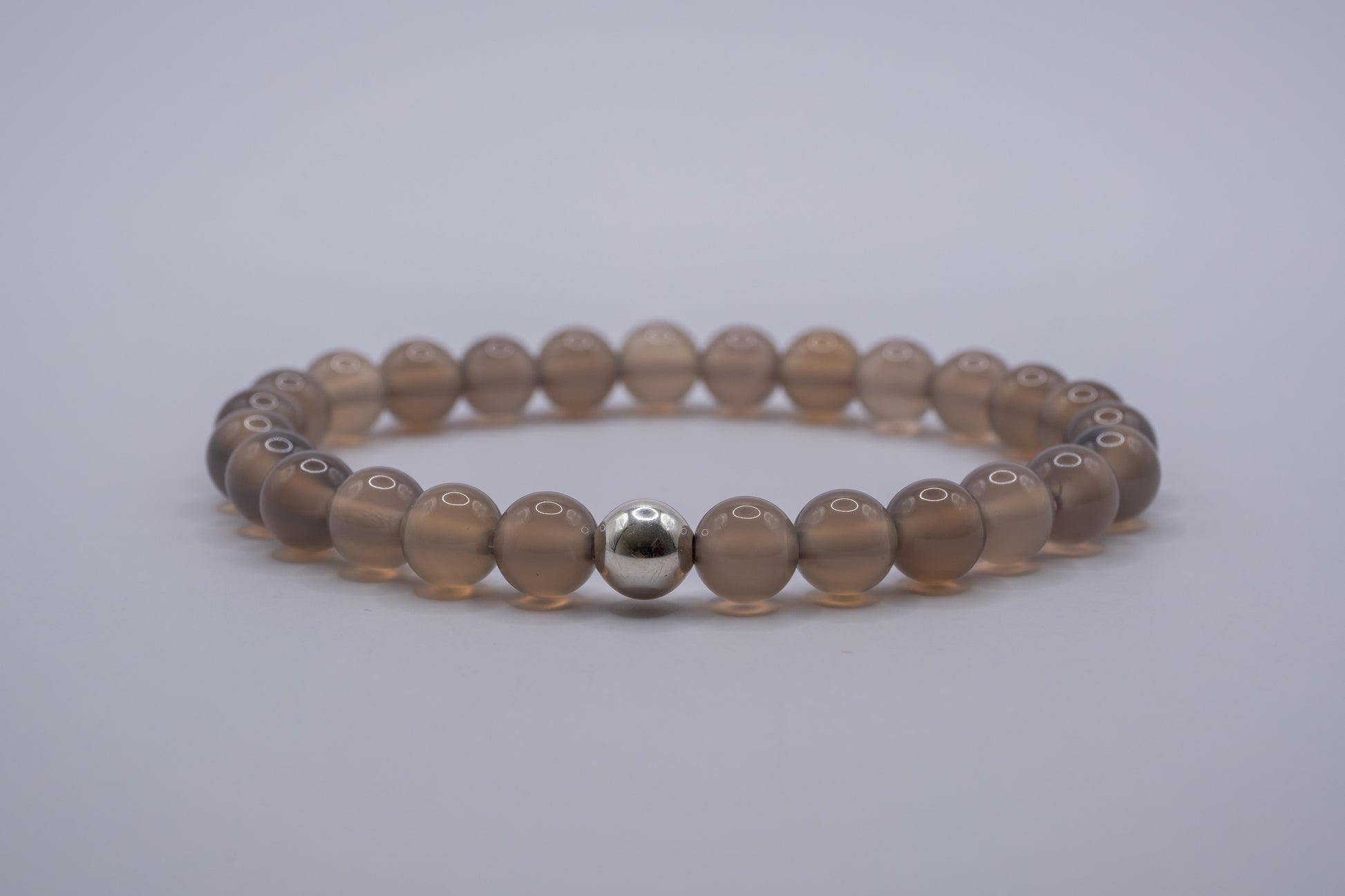 Dieses reduzierte Achatarmband besticht durch seine Klarheit: hochwertig polierte Achatperlen mit einer dezente Sterling Silber 925-Perle.