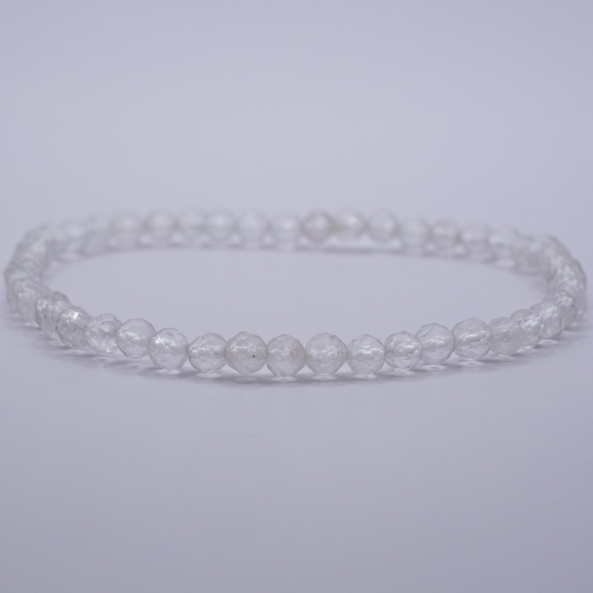 Dieses Bergkristall-Armband besticht durch seine facettierten Schliffe. Der natürliche Quarz zeichnet sich durch seine Transparenz und Härte aus, was ihn zu einem langlebigen Schmuckstein macht.