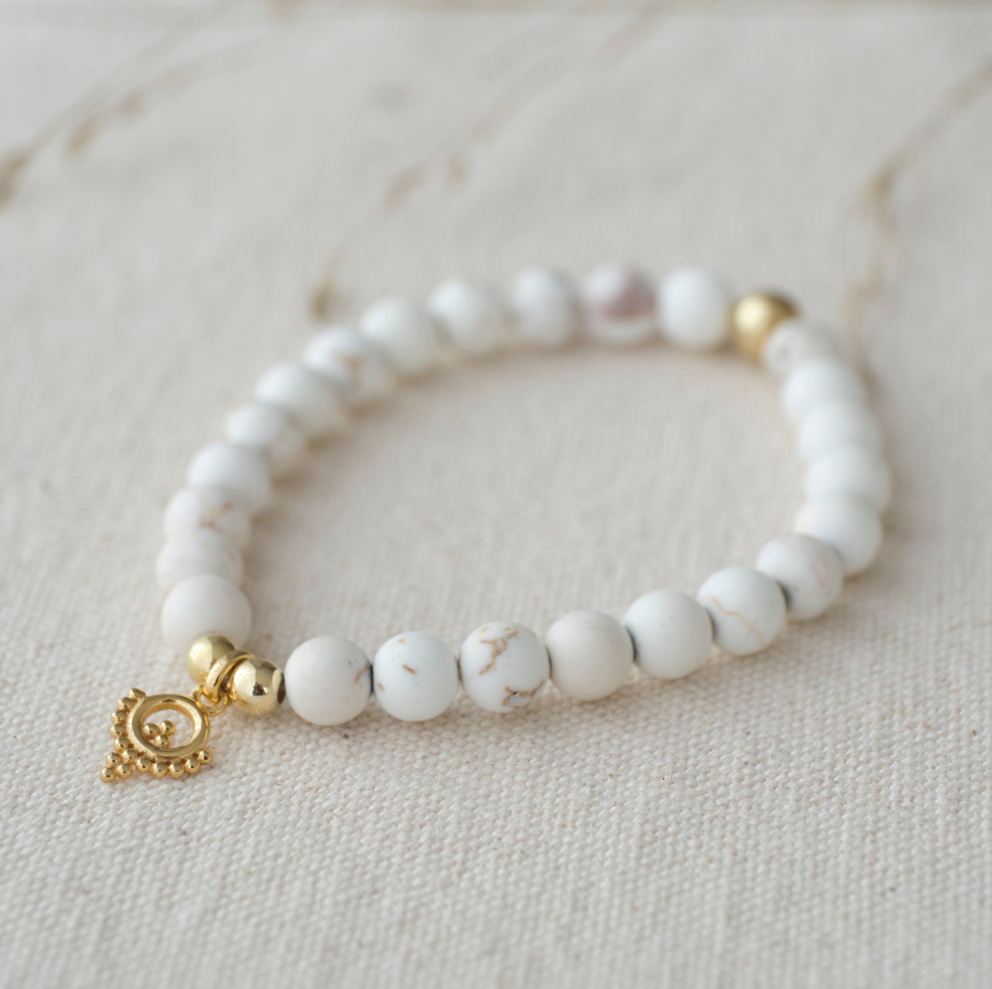 Dieses elegante Armband besteht aus natürlichen Dendriten-Jaspis-Perlen. Die sanften, matten Oberflächen wirken beruhigend und erdend. Stilvolle Sterling-Silber-925-Elemente mit Goldvergoldung verleihen dem Schmuckstück Eleganz.