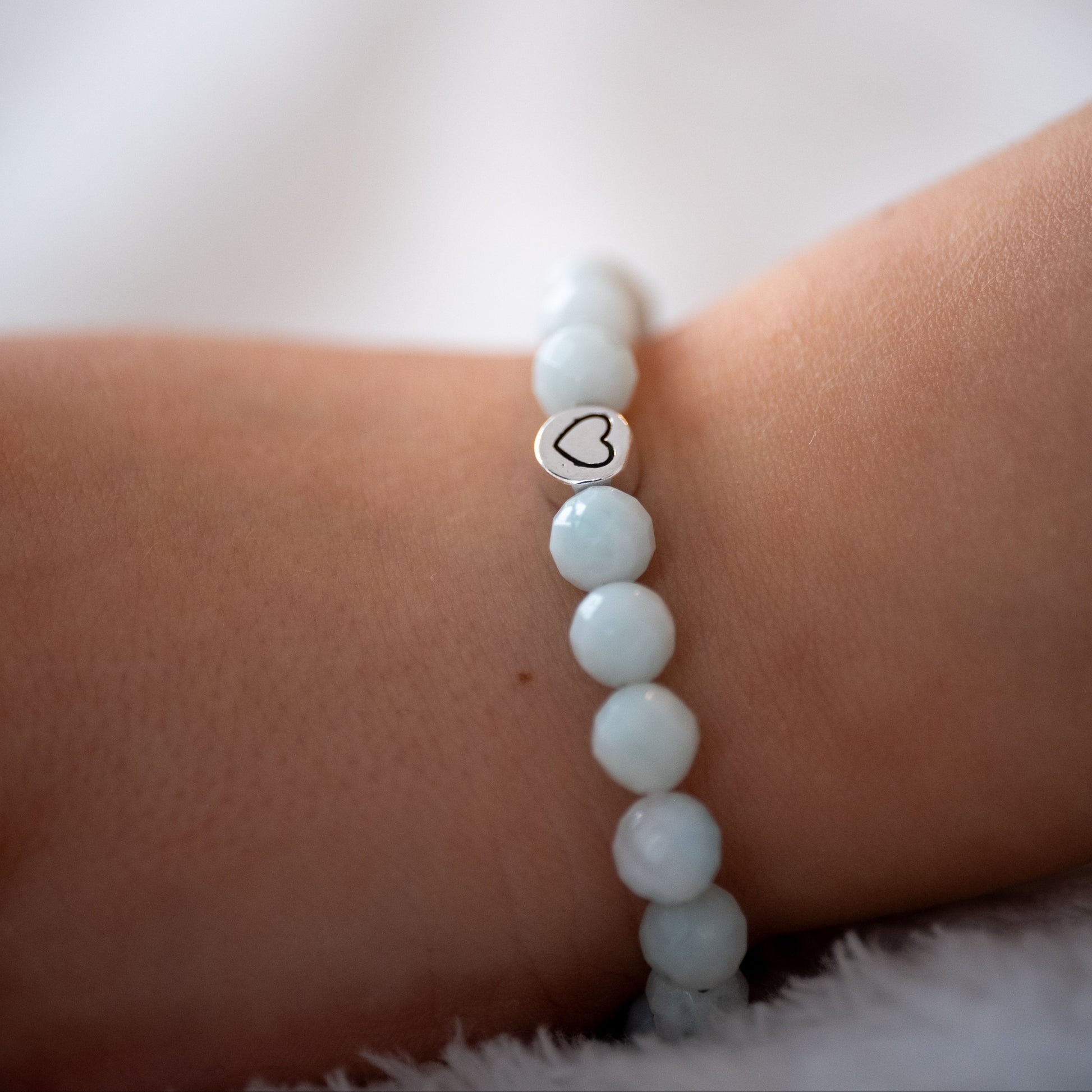Dieses liebevoll gestaltete Kinderarmband verbindet die sanfte Energie des Amazonits mit einem hochwertigen Herz aus Sterling-Silber 925.