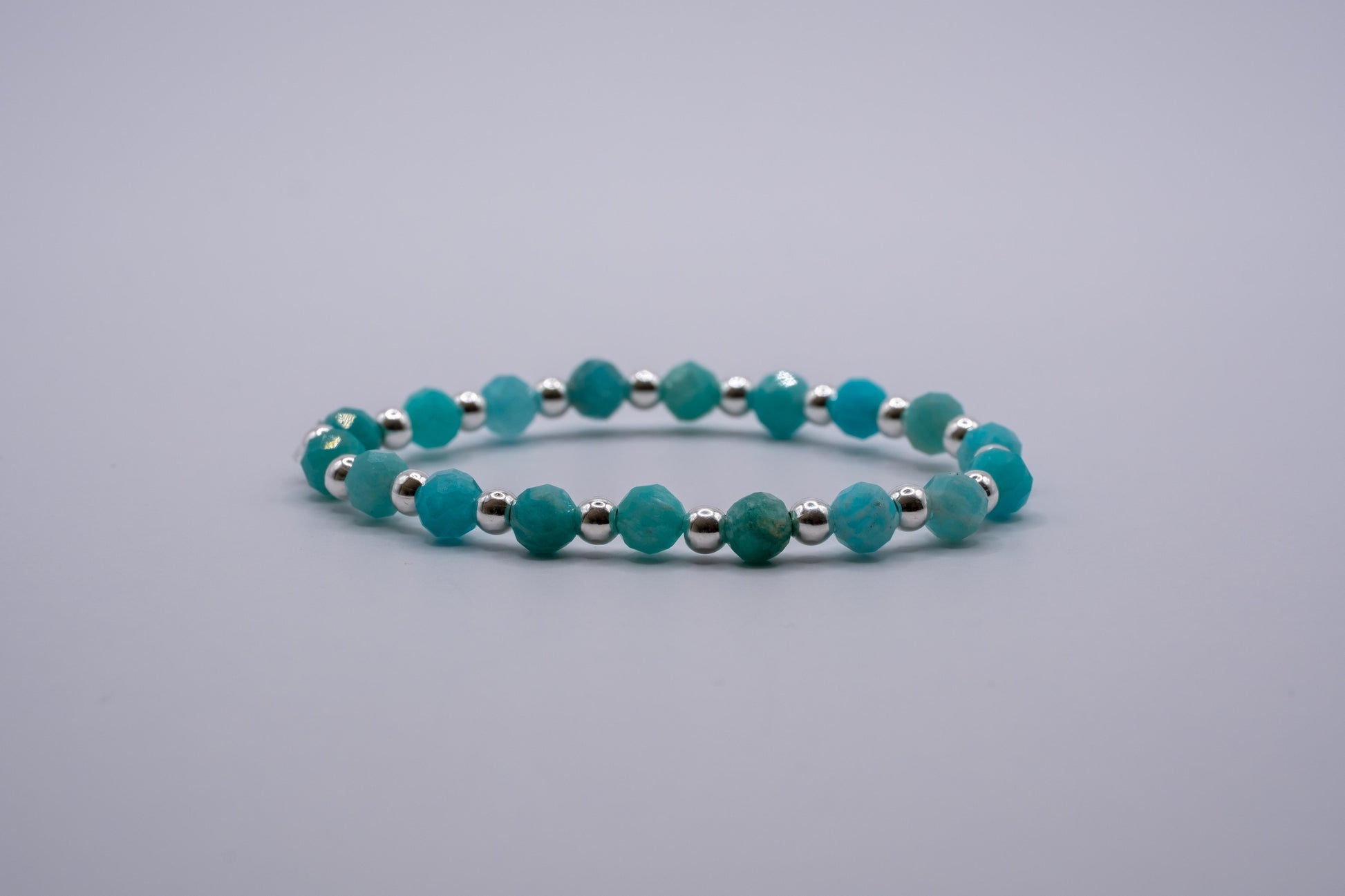 Dieses liebevoll gestaltete Kinderarmband verbindet die sanfte Energie des Amazonits mit hochwertigen Sterling-Silber-Perlen.