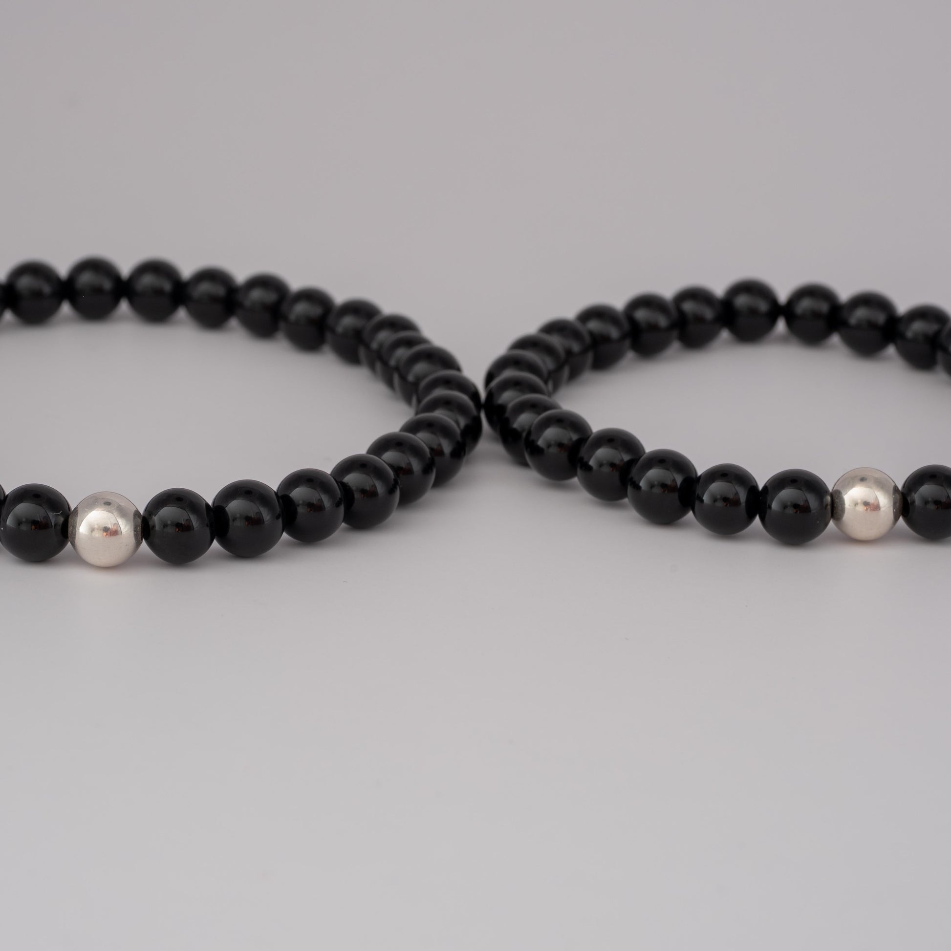 Schlichtes Partnerarmband mit Onyx-Perlen und einer glänzenden Sterlingsilber-925-Perle.